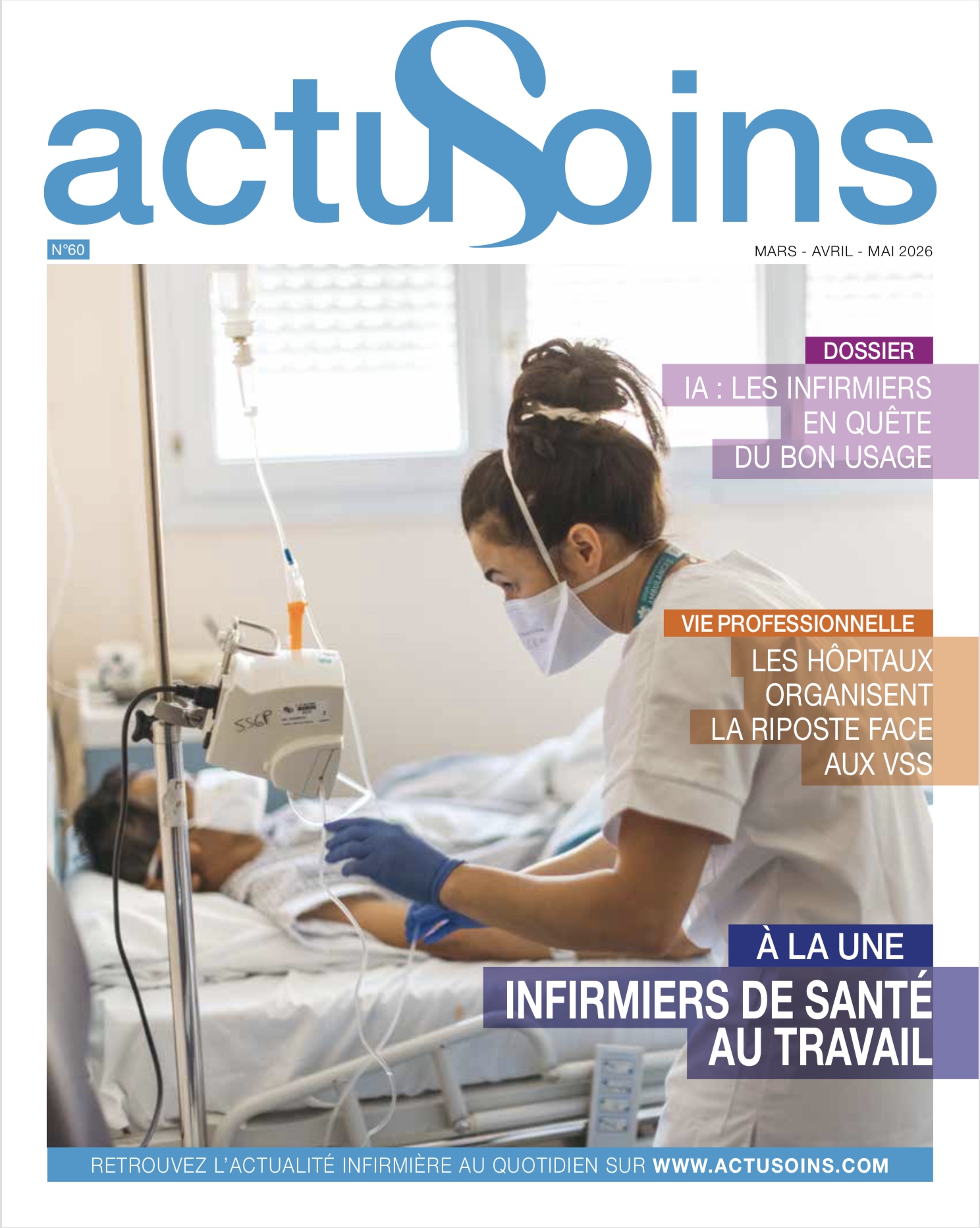 Le numéro 60 d’ActuSoins Magazine (mars- avril-mai 2026) est désormais disponible en version PDF. Au sommaire :À LA UNE– Infirmiers de santé au travail : les experts de la préventionPRATIQUES– Cicatrisation en pédiatrie : adapter les soins à chaque âge– Exacerbation d’asthme : reconnaître tôt pour sauver vite– Chirurgie thyroïdienne : indications, surveillance et complicationsVIE LIBÉRALE– Chimiothérapie à domicile : Ako@dom […]