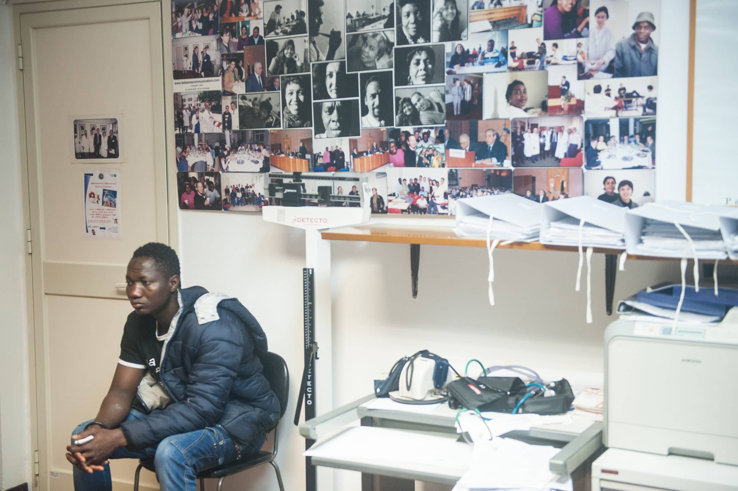 Ce jeune gambien, mineur, souffre de tuberculose et d’une blessure au bras. En Libye, il a été battu par ses passeurs avant de prendre le bateau. Il est venu au centre d’assistance sanitaire de la polyclinique Paolo Giaccone accompagné d’une assistante sociale. Ce centre reçoit plus de trente migrants par jour.
