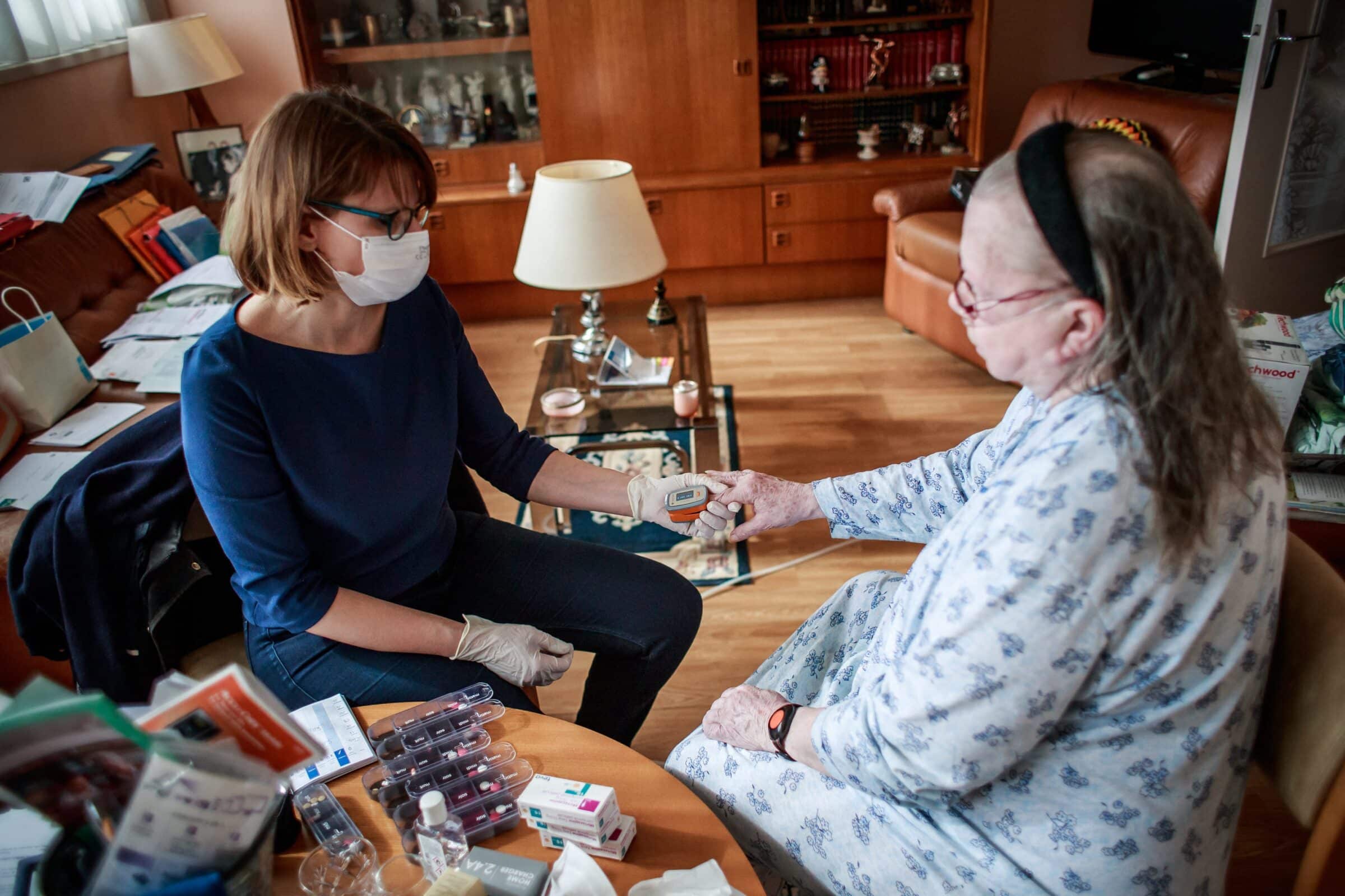 © Une infirmière messine chez une patiente pendant l’épidémie de Coronavirus. PHOTOPQR/Le Républicain Lorrain/Pascal Brocard.