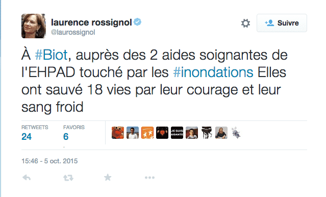 Laurence Rossignol, secrétaire d’Etat chargée des personnes âgées, s’est rendue dans l’après-midi à l’Ehpad du Clos Saint-Grégoire afin, selon son cabinet, “d’apporter son soutien et exprimer sa solidarité aux familles et aux proches des victimes”. Dans un tweet, Laurence Rossignol a fait état non pas de “17” mais de “18” vies sauvées à Biot.