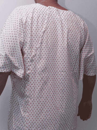 Les hôpitaux disposeront donc (s’ils en font l’acquisition) d’un “modèle de chemise à fermeture croisé dos par trois jeux de pression, à encolure ronde et manches kimono”. Elle sera destinée aux patients hospitalisés, en complément des blouses classiques destinées aux patients en pré ou post opératoire immédiat.