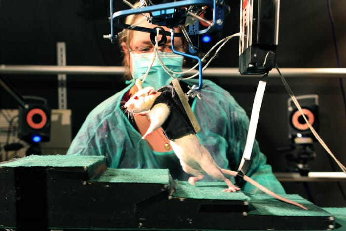 Des rats blessés à la moelle épinière et en grande partie paralysés remarchent normalement grâce à une stimulation électrique et chimique et au recours à un harnais robotisé, révèle une étude suisse publiée jeudi aux Etats-Unis et qui suscite un espoir pour l’homme.