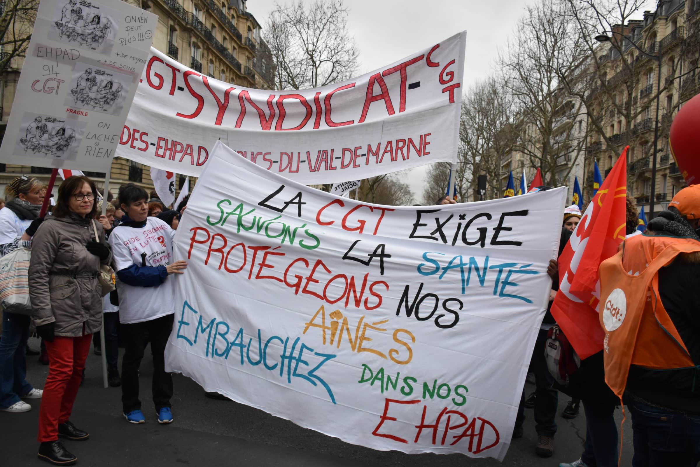Un avis largement partagé par la foule des manifestants : « on va sur une catastrophe sanitaire », affirme Claire, aide-soignante au sein de l’Ehpad Adelaide Hauteval (95) qui est venue manifester. Cette dernière dénonce le « manque de moyens face à des personnes âgées fortement dépendantes ». D’après les derniers chiffres, les résidents entrant en Ehpad ont en moyenne 5 ans et sont fortement dépendant à 57 %.
