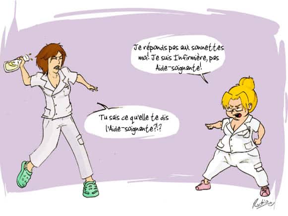 Effectivement, Selon l’article 4 du 11.02.2002, l’IDE ne peut déléguer, à l’AS que des soins relevant de son rôle propre et pour lesquels les aides-soignants ont reçu un enseignement. Voilà pour la théorie ! “Dans la pratique, dès que je suis arrivée en service on m’a demandé de faire des choses qui dépassaient mon rôle et mes compétences” rétorque Robin, aide soignant dans un service de soins intensifs. L’éternel problème du glissement de fonction refait surface… “Les réunions de service servent à ça, à recadrer, à fixer certaines limites à ne pas franchir “ poursuit Mme Roche. En sachant qu’en cas de plainte l’infirmière qui a délégué mais aussi l’AS qui a accepté de faire un acte en dehors de son domaine de compétence en partageront la responsabilité. Malgré tout, il ne faut pas occulter l’aspect positif de cette collaboration. Les AS, moins enclins à la mobilité, sont souvent les plus anciens du service, ce sont également eux qui sont plus longtemps en contact avec les patients. “Quand je suis arrivée toute nouvelle dans le service, heureusement qu’il y avait les aides-soignantes. Elles m’ont expliqué les habitudes du service, les petites manies des médecins… enfin tout ce qu’on n’apprend pas à l’école ! “ raconte Karine, diplômée depuis décembre dernier. Outre ce rôle d’accueil, leur position dans la chaine des soins en fait le premier interlocuteur des malades, et bien souvent ce sont elles qui signalent qu’un “patient va mal”. ” Alors même si parfois c’est tendu il faut pas toujours faire attention aux petites remarques. Nos deux professions sont indispensables l’une à l’autre et une bonne prise en charge des patients mérite bien quelques efforts” ! conclut Audrey, IDE en réanimation.
