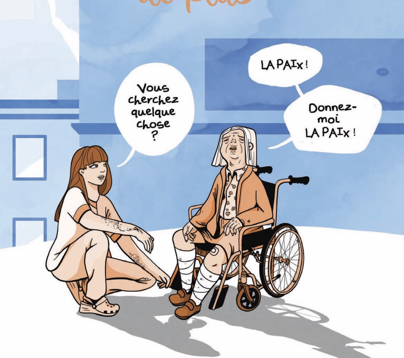 « J’ai pris l’habitude d’apporter un carnet avec moi lors de mes missions en Ehpad, explique la dessinatrice sur la quatrième de couverture. Ces histoires, j’ai essayé de les transcrire le plus fidèlement possible entre deux soins d’hygiène et de confort, en marchant ou accroupie contre le mur. » L’ouvrage se présente donc comme une série de scénettes de quelques pages chacune. Et mieux vaut avoir le cœur bien accroché si l’on souhaite s’y plonger, car Lola Chaine n’est pas du genre à prendre des pincettes quand elle dessine.
