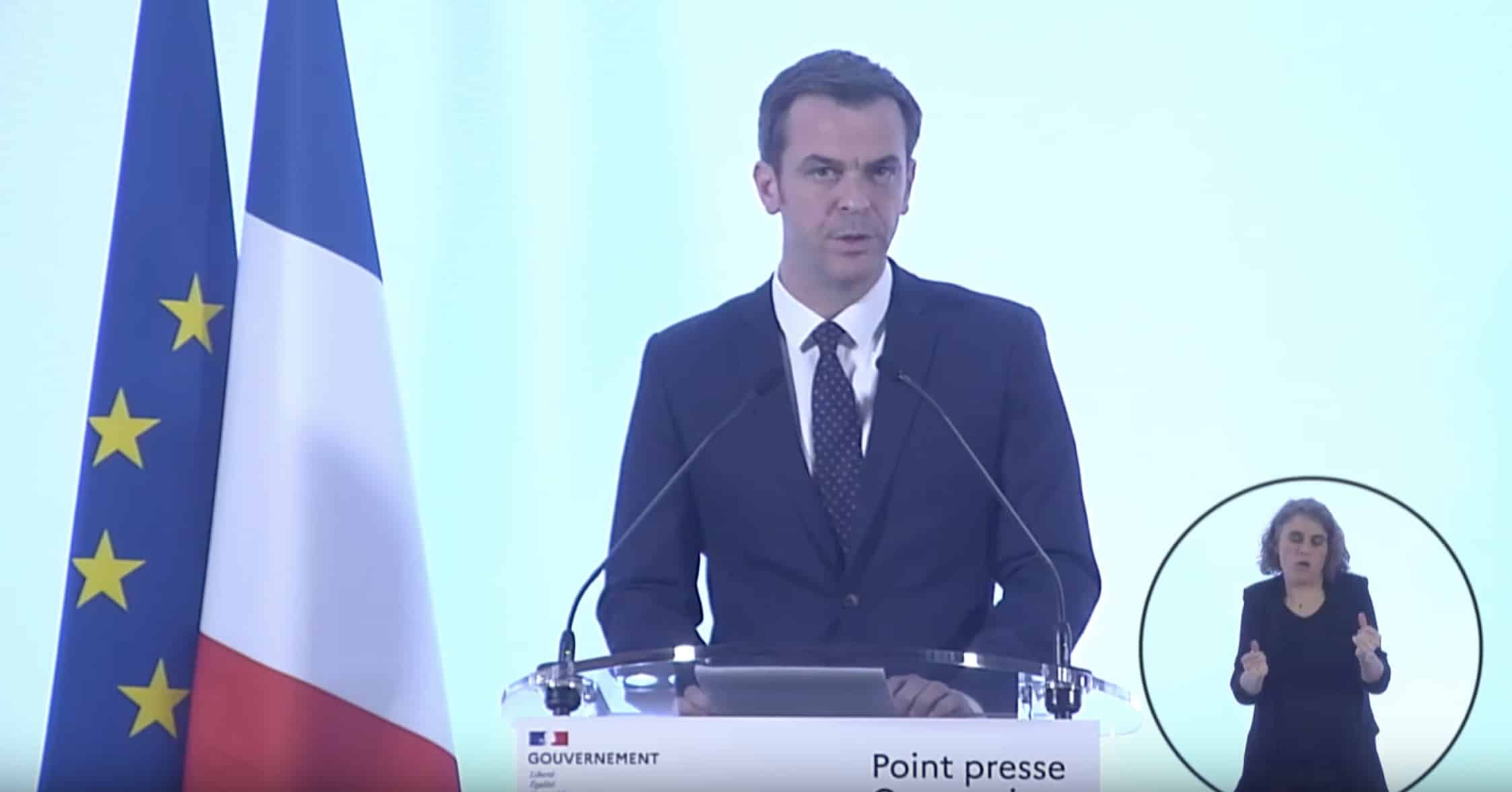 capture d’écran retransmission du point presse d’Olivier Véran, 23 mars 2020, You Tube.