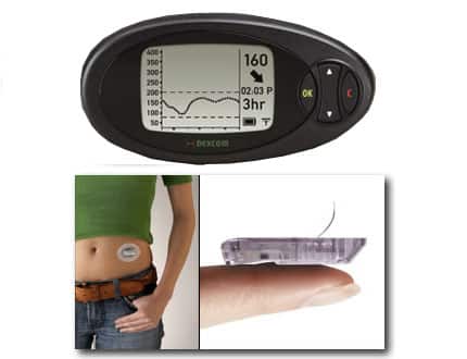 La pompe OmniPod, fabriquée par le laboratoire Insulet (Etats-Unis), pèse 125g et mesure 6,4cm x11,4cm x2,5 cm; le dispositif de mesure du glucose en continu provient de la société Dexcom.