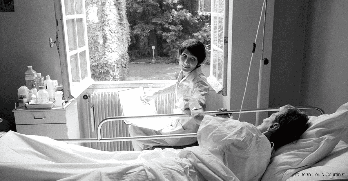 Aide-soignante discutant avec un malade. Service de soins palliatifs Paul Brousse Villejuif.