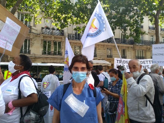 Seda, 47 ans, est infirmière au sein du groupement hospitalier Diaconesses- Croix Saint-Simon. Il lui était impossible de ne pas être présente aujourd’hui. Elle, dont le papa est encore hospitalisé à cause du covid, estime que « vivre avec moins de 2000 euros pour un temps complet », ce n’est plus acceptable, surtout « avec les responsabilités que l’on a ».