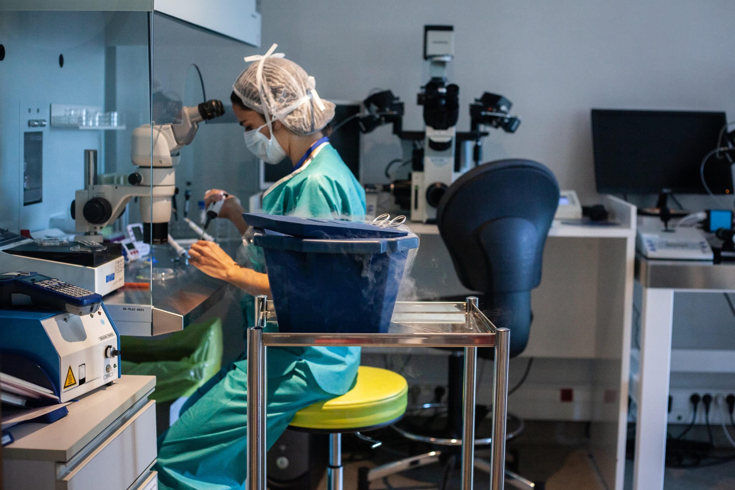 La biologiste est en train de congeler un embryon. © Ayoub Benkarroum