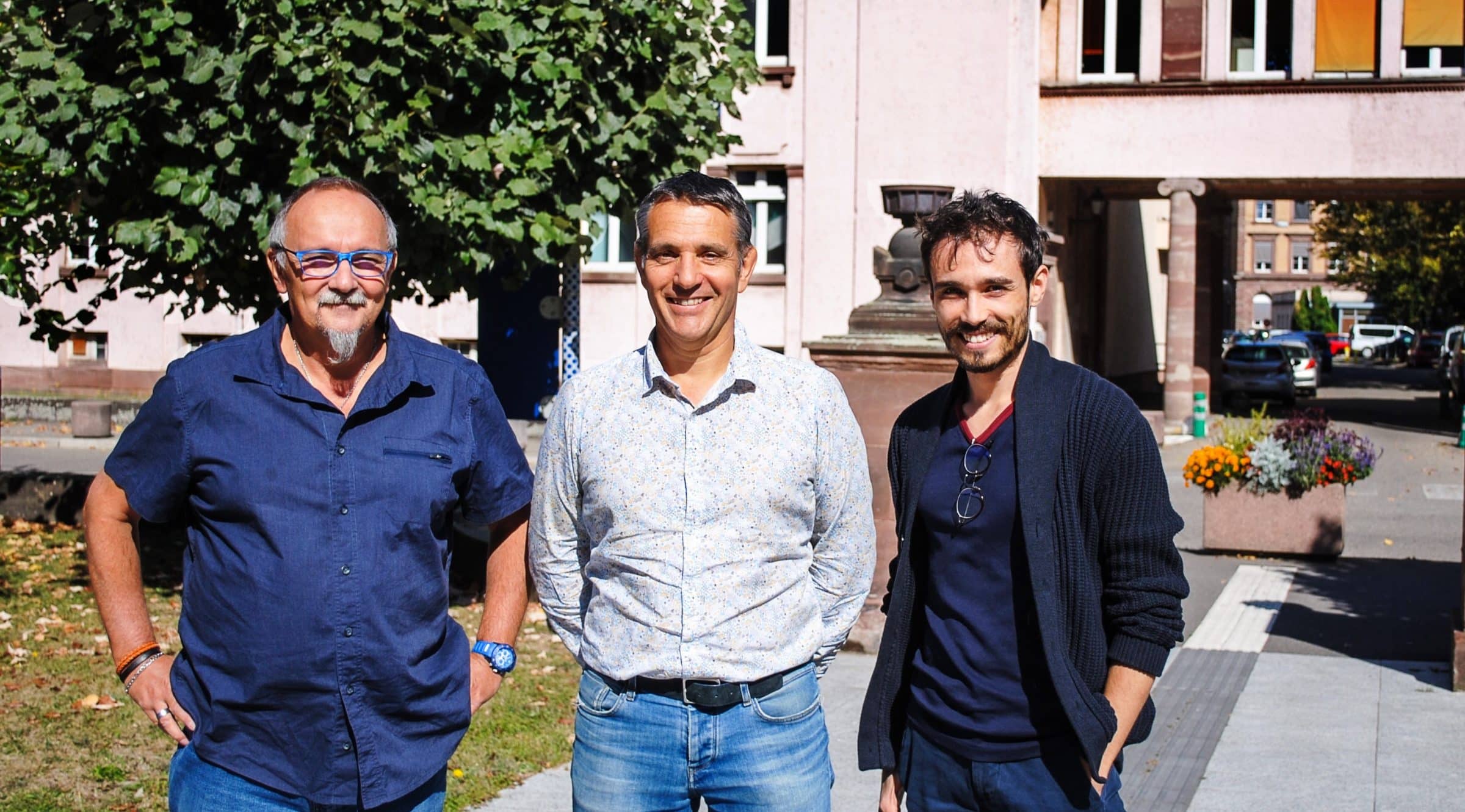 L’équipe du centre psychotrauma Grand-Est, aux Hôpitaux universitaires de Strasbourg. De gauche à droite : Christian Kuntz, cadre infirmier, Pierre Vidailhetn psychiatre et responsable du centre, et Cédric Palacio, psychologue. © DR