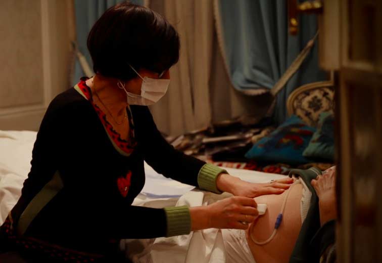 Oui, elle était vraiment contente. Ma crainte était que face à la caméra, elle change, qu’elle soit en représentation. Mais elle reste vraiment la même. Parfois, elle finit ses soins auprès d’un patient et elle part de l’appartement, sans nous attendre. Elle ne tient pas compte de nous, les choses sont faites de manière très naturelle y compris avec ses patients qui agissent comme si nous n’étions pas là.