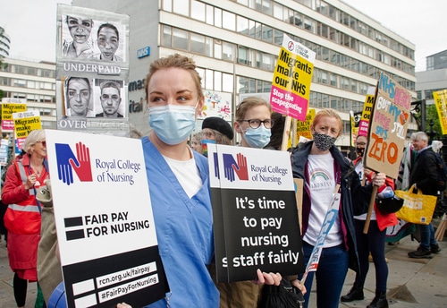 En juillet 2021, les soignants du NHS défilaient déjà sur Downing Street pour exiger une augmentation de salaire. © Karl Nesh / ShutterStock