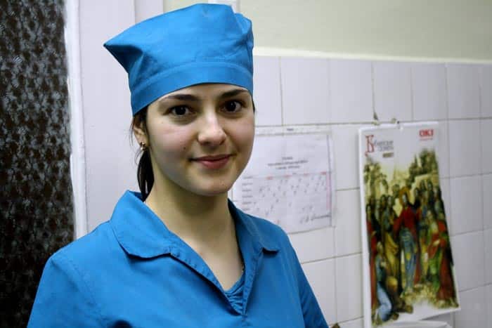 Pas totalement infirmière et pas encore médecin, la jeune fille observe, dans l’entre-deux, les relations dans son service. « Même s’ ils sont agréables en dehors, les médecins peuvent-être durs à l’hôpital car il-y-a beaucoup de pression. Maintenant que j’ai plus d’expérience, ça se passe bien et je profite de mon temps libre pour observer les différents services, j’aide aux analyses en laboratoire par exemple . En Ukraine, nous , les infirmières, devons appeler les médecins pour tout, même si nous savons quoi faire : lorsque la pression d’un malade est élevée par exemple. C’est toujours le docteur qui doit s’adresser aux patients ». En Ukraine, Les aides-soignants en sont tenus aux tâches ingrates, changer les draps, laver les malades… pour à peine 70 euros par mois : « Ils n’ont pas d’éducation médicale ni de formation à la psychologie de la relation aux patients… généralement à table, ils mangent dans une salle séparée des infirmières et des médecins ».