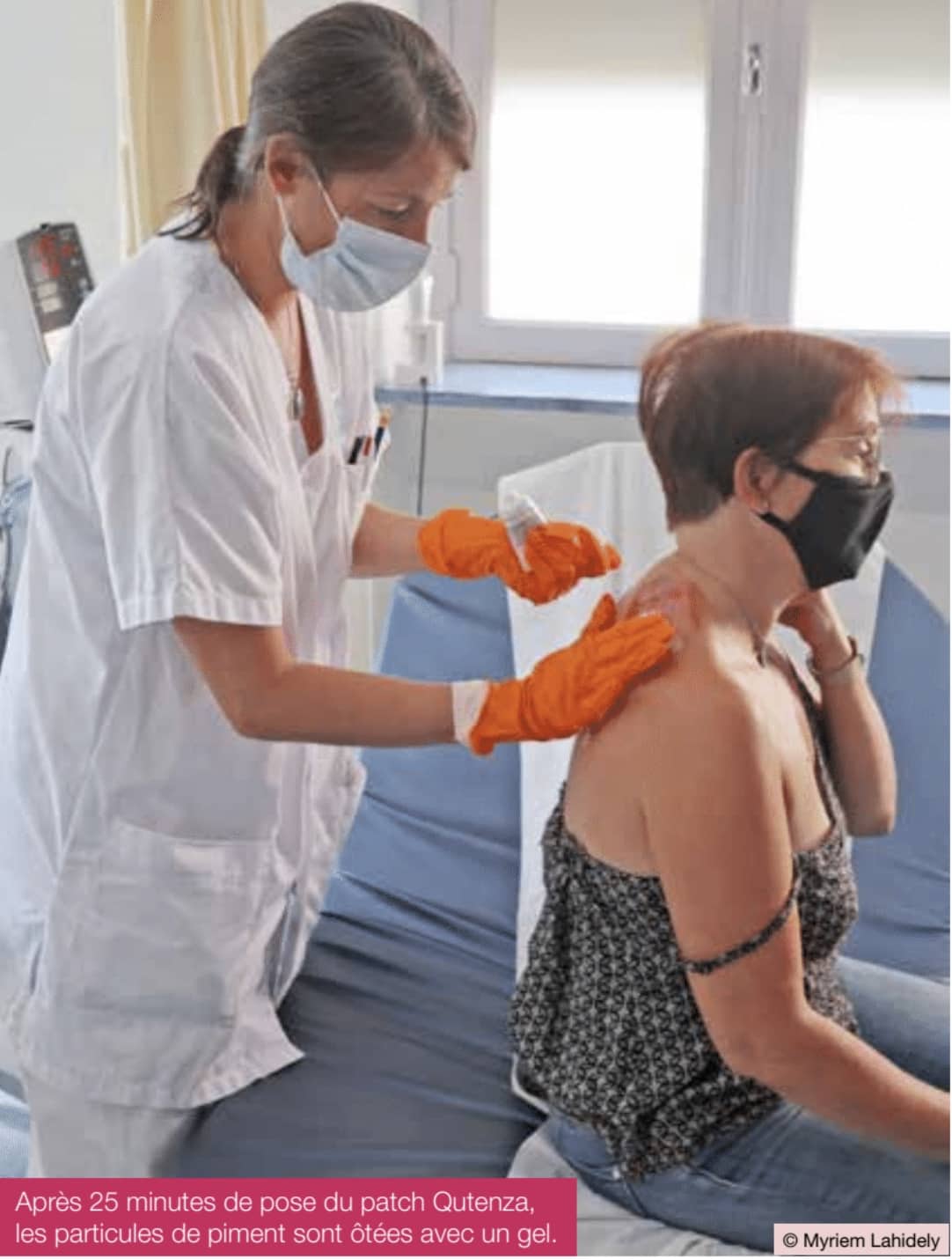 Elle vient pour un « Qutenza », patch dont le piment est le principe actif (capsaïcine). Il va rester posé vingt-cinq minutes, chauffer fortement, et saturer, pour les désensibiliser, les récepteurs de la douleur.